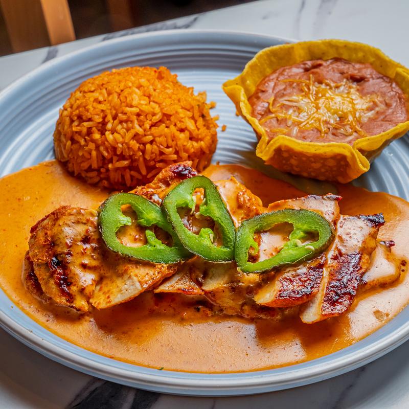 Grilled onion, bell pepper, tomato, Mexican rice, refried beans, guacamole, crema, pico de gallo. Choice of corn or flour tortilla.